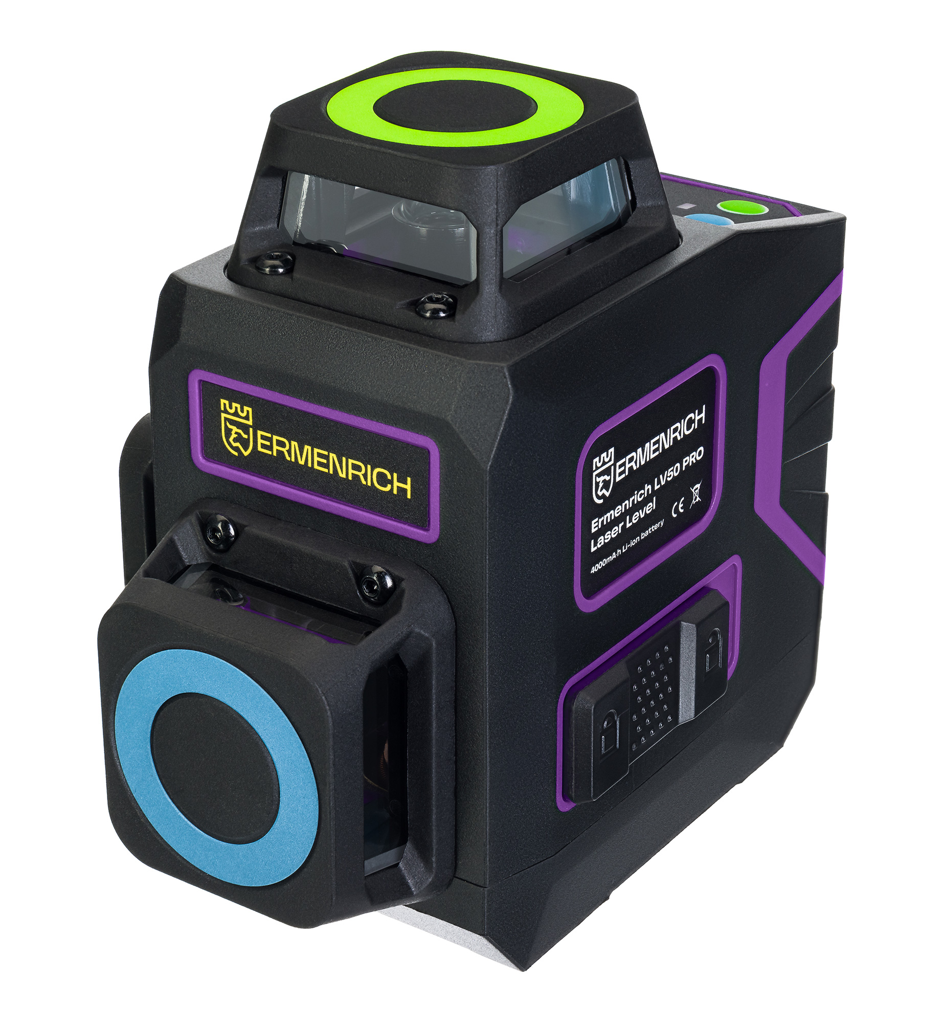 Ermenrich PRO LV50 Lazer Terazi, titreşimleri azaltan bir dengeleyici ile donatılmıştır ve bu sayede cihaz lazer düzlemini otomatik olarak hizalar. En yüksek düzey doğruluğu elde etmek istiyorsanız, kite dahil olan hedef plakasını (lazer ışını alıcısı) kullanabilirsiniz. Yerleşik bir lityum şarj edilebilir pil, uzun pil ömrü sağlar ve ayrıca uzaktan kumanda pille çalışır. Tüm aydınlatma koşulları için optimum ayarın yapılmasını kolaylaştıran dört lazer parlaklık seviyesi bulunmaktadır. Lazer terazi, geniş bir sıcaklık aralığında ve hatta donma noktasının altında bile çalışacak şekilde tasarlanmıştır, toza ve su sıçramasına karşı dayanıklıdır.